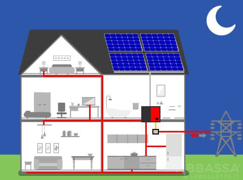 L’accumulatore garantisce l’erogazione della corrente elettrica anche durante la sera e la notte, utilizzando energia pulita e ad impatto 0, a patto che la batteria sia correttamente dimensionata per soddisfare tutte le esigenze di assorbimento che si manifestano durante le ore notturne