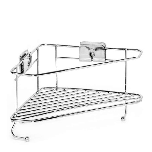 Cestello doccia Grip. In filo di acciaio cromato angolare. Fissaggio con biadesivo. Misura 20,3 x 20,3 x 12,1 h cm