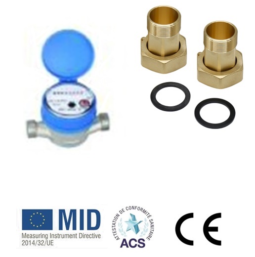 Contatore Asciutto D. 3/4″ Getto Unico Completo Cop. Rac.