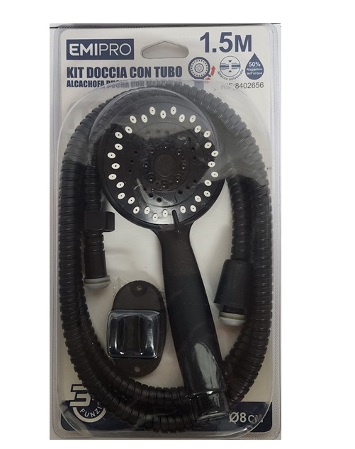 DOCCIA CON TUBO MT. 1,5 ACCIAIO INOX+PLASTICA COLORE NERO 8402656