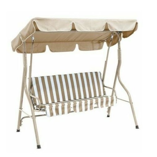 DONDOLO 3 POSTI “BASIC” CM. 170X110X153H TUBI IN FERRO DIAM. 38 VERNICIATI A POLVERE BEIGE CUSCINO RIGHE BIANCO – ECRU COPERTURA IN POLIESTERE 140 GR. / MQ. ECRU