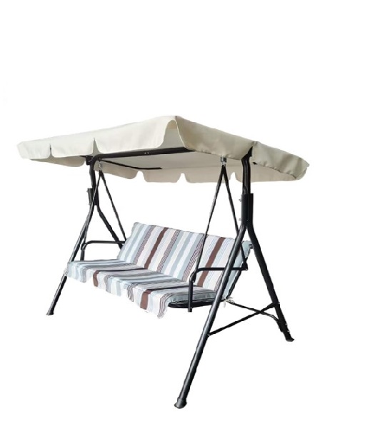 Dondolo 3 posti “many” cm. 170x110x153h telaio in acciaio marrone diam. mm. 38 cuscini poliestere 140 gr./mq. strisce bianco grigio tetto 140 gr/mq tessuto poliestere verde chiaro