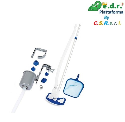 Kit Di Pulizia Deluxe Cm. 279. Include: Spazzola, Retino E Skimmer, Asta In Alluminio Regolabile, Tubo Da m. 7,50 E Mm. 32 Di Diametro, Funziona Con Pompe Filtro Da 2.006 L/h In Su
