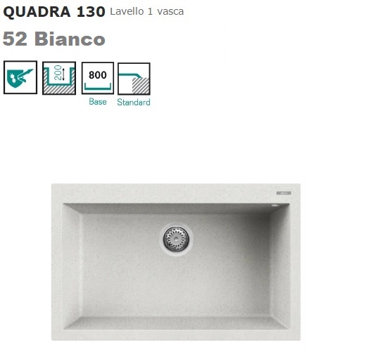 Quadra 130 Standard 790X500 Mm 1 Vasca 52 Bianco