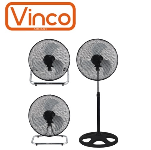 Ventilatore 3 in 1 Vinco Piantana Tavolo Parete: piantana Vinco altezza regolabile fino a cm. 160 – 90W – diametro pale cm. 45 – 3 velocità – oscillazione – parte superiore con supporto per appoggio da tavolo o installazione fissa a parete – colore nero – base tonda 70718