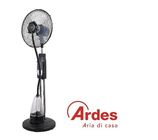 VENTILATORE A PIANTANA CON UMIDIFICATOREArdes AR5M39 Humy ventilatore a piantana nebulizzatore. Diametro 40 cm. 3 velocità. 3 pale. Base tonda. Funzione brezza naturale e notturna. Umidificatore ad ultrasuoni. Oscillazione laterale automatica. Potenza 70 W. Timer 7,5 ore. Capacità serbatoio 2 litri. Nebulizzazione regolabile. Autonomia di 16 ore. Comandi manuali. Telecomando. Altezza 130 cm.
